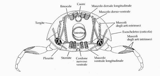 L'acquisizione della flessibilità corporea è stata fornita da sottili regioni intersegmentali: le articolazioni. I muscoli ad esse correlati si sono organizzati come fasce intersegmentali, con la conseguente scomparsa dei muscoli circolari. In seguito all' acquisizione di un sistema circolatorio aperto e dell' emocele, si è realizzata una profonda riduzione del celoma. E' stato invece conservato il vaso dorsale simile a quello degli anellidi, che si è evoluto in una struttura pompante muscolarizzata: il cuore. I metanefridi sono stati sostituiti da organi escretori chiusi. Gli artropodi presentano organi di senso superficiali: le setole. Data la presenza di un corpo rigido, l' accrescimento gli viene conferito da mute o ecdisi periodiche. La conquista della terra ferma e dell' acqua dolce hanno esposto a stress osmotici e ionici tali organismi, superati per mezzo della cuticola. Il loro successo evolutivo è da ricondursi alla loro ampia diversità, dovuta alla differenziazione dei vari segmenti e delle appendici. Il loro stesso corpo è passato attraverso forme di specializzazione regionale, ossia alla tagmosi. Infine il capo, che inizialmente si presentava con un acron presegmentale e 4 o 5 segmenti fusi, varia molto tra i gruppi esistenti.