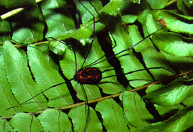 Le basi dei pedipalpi sono fuse ventralmente a formare un 'ipostoma', mentre un 'rostro', o 'tecum', si estende dorsalmente sopra la bocca (a destra:Oligonychus perseae). | | | |  |