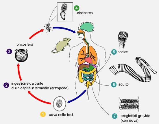 Delle circa 400 specie note, la maggior parte si rinvengono in vertebrati superiori, ed i principali ospiti definitivi sono i roditori. Questi possono infestare l'uomo allorquando un artropode (insetti) infetto, contenente uno stadio di cisticerco, viene ingerito e giunge nell'intestino dell'uomo. Le specie più pericolose per l'uomo sono Hymenolepsis nana and Hymenolepsis diminuta. La vita media di un adulto di Hymenolepsis è di 4-6 settimane, ma l' infezione prodotta può peristere anche per diversi anni.