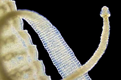 Hymenolepsis nana: dettaglio delle proglottidi e del capo